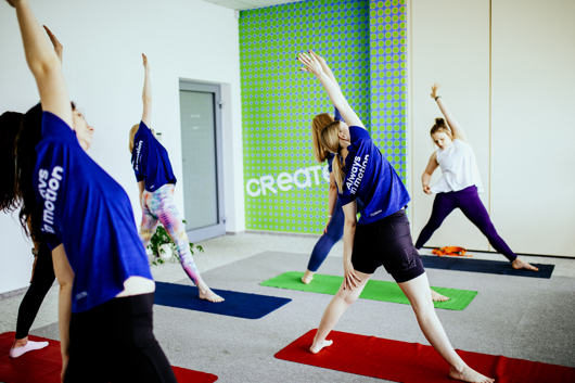 Natalia, unsere Yoga-Lehrerin, ist bei unseren polnischen Mitarbeitenden zu einer geschätzten Persönlichkeit geworden. Sie leitet Kurse, die sowohl anspruchsvoll als auch zugänglich sind und sich an alle Erfahrungsstufen richten. Unsere Mitarbeitenden berichten, dass sie sich nach jeder Sitzung energiegeladener und erfrischter fühlen und bereit sind, alles in Angriff zu nehmen, was der Arbeitstag für sie bereithält. Wir sind bestrebt, einen Arbeitsplatz zu schaffen, der das Wohlbefinden der Mitarbeitenden und die Work-Life-Balance fördert. Und wie ließe sich das besser erreichen als mit ein bisschen Yoga? Namaste!